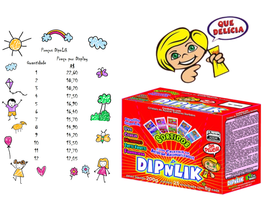 Quem aí não tem uma doce lembrança com o pirulito que mergulha no pozinho de sabor? O DipnLik é a diversão que conecta avós, pais e filhos, unindo a família com um gostinho de pura felicidade e muita nostalgia! É o sabor da infância que se renova a cada dia, criando novas histórias e sorrisos.